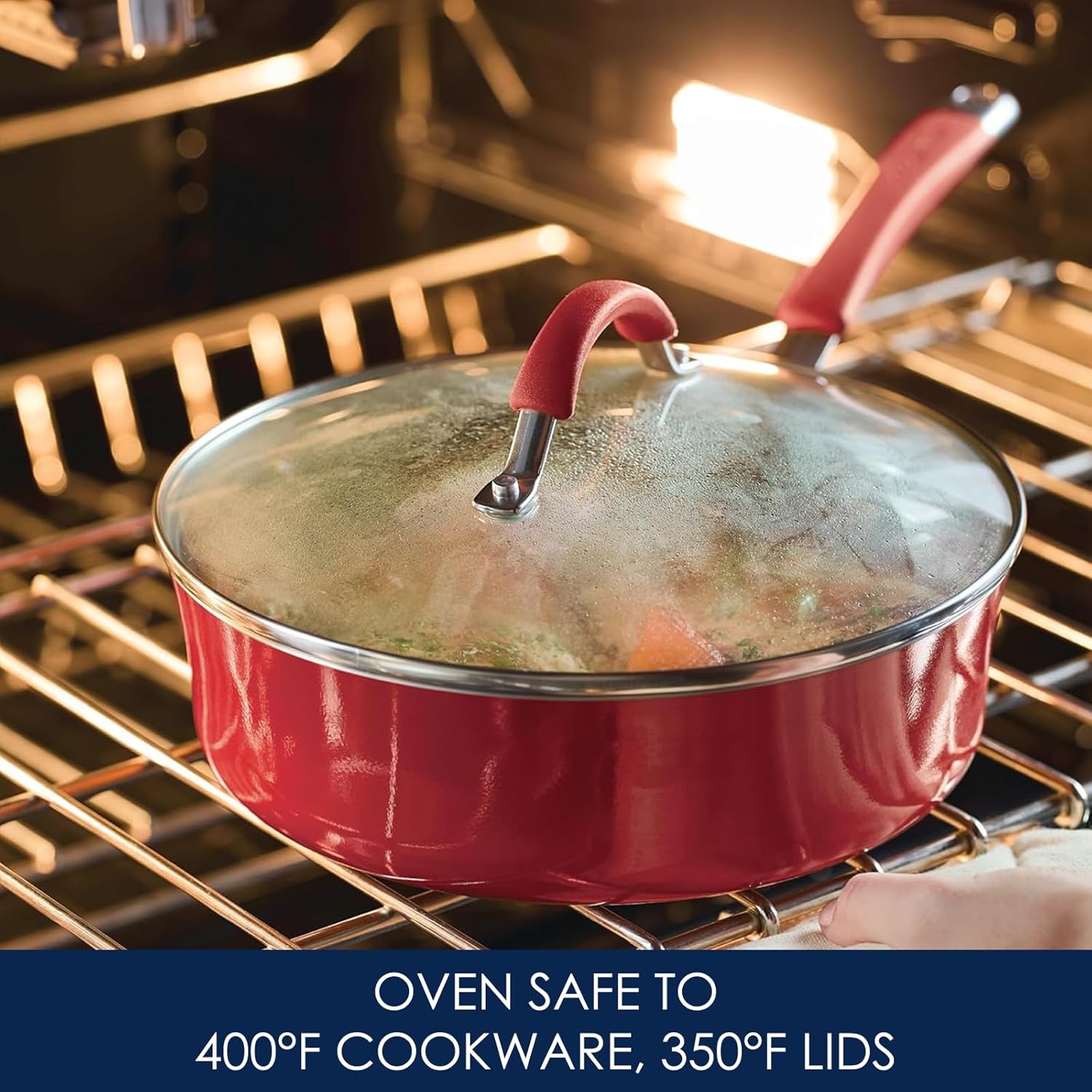 Rachael Ray Cucina Nonstick Cookware Pots and Pans Set, 12 Piece, Cranberry Red