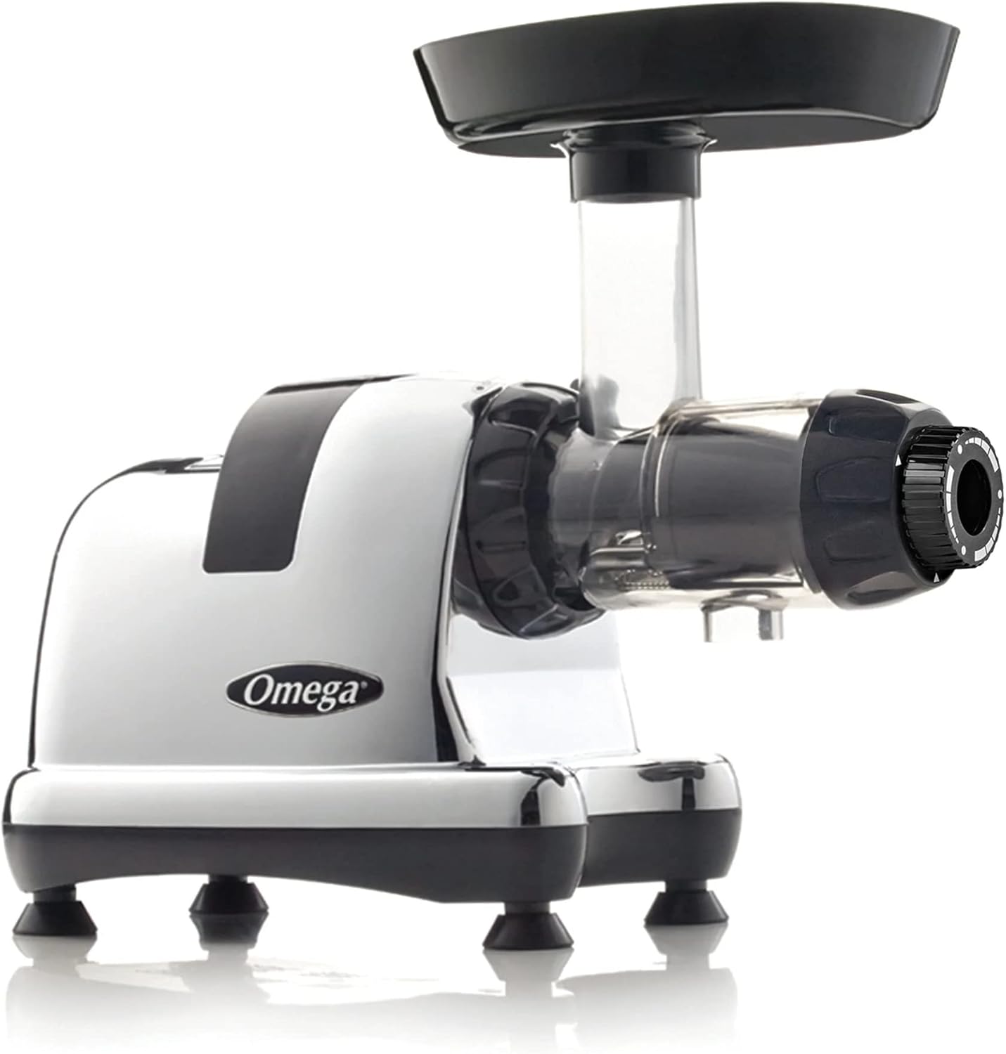 Omega Cold Press Juicer Machine, Vegetable and Fruit Juice Extractor and Nutrition System Makes Nut Milks Baby Food and Sorbets, Triple-Stage 80-RPM Slow Masticating Juicer, 200-Watts, Chrome