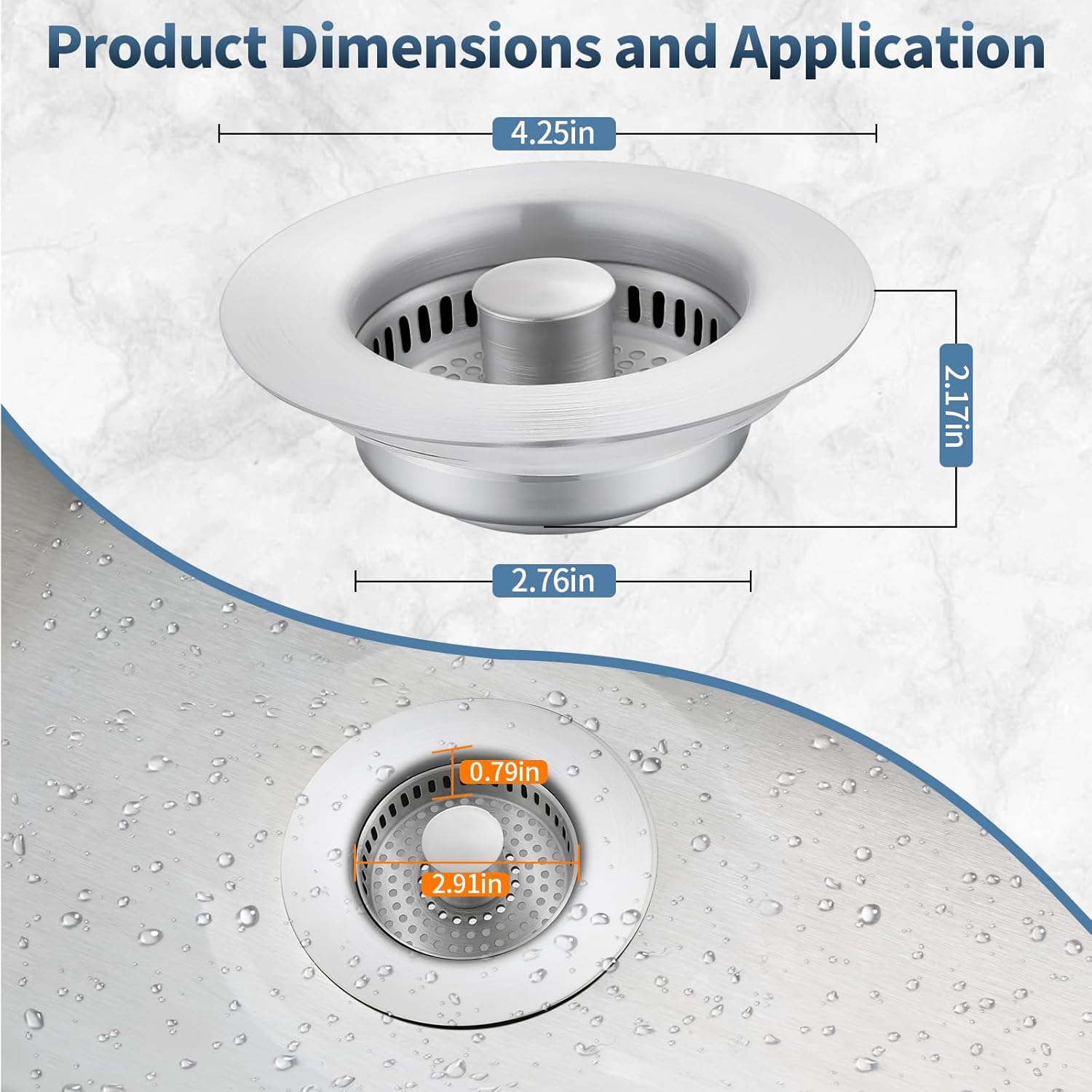 - Universal Fit for 3-1/2 Inch Drains – Designed to fit most standard U.S. sink drain holes Quick and tool-free installation—just plug and use!